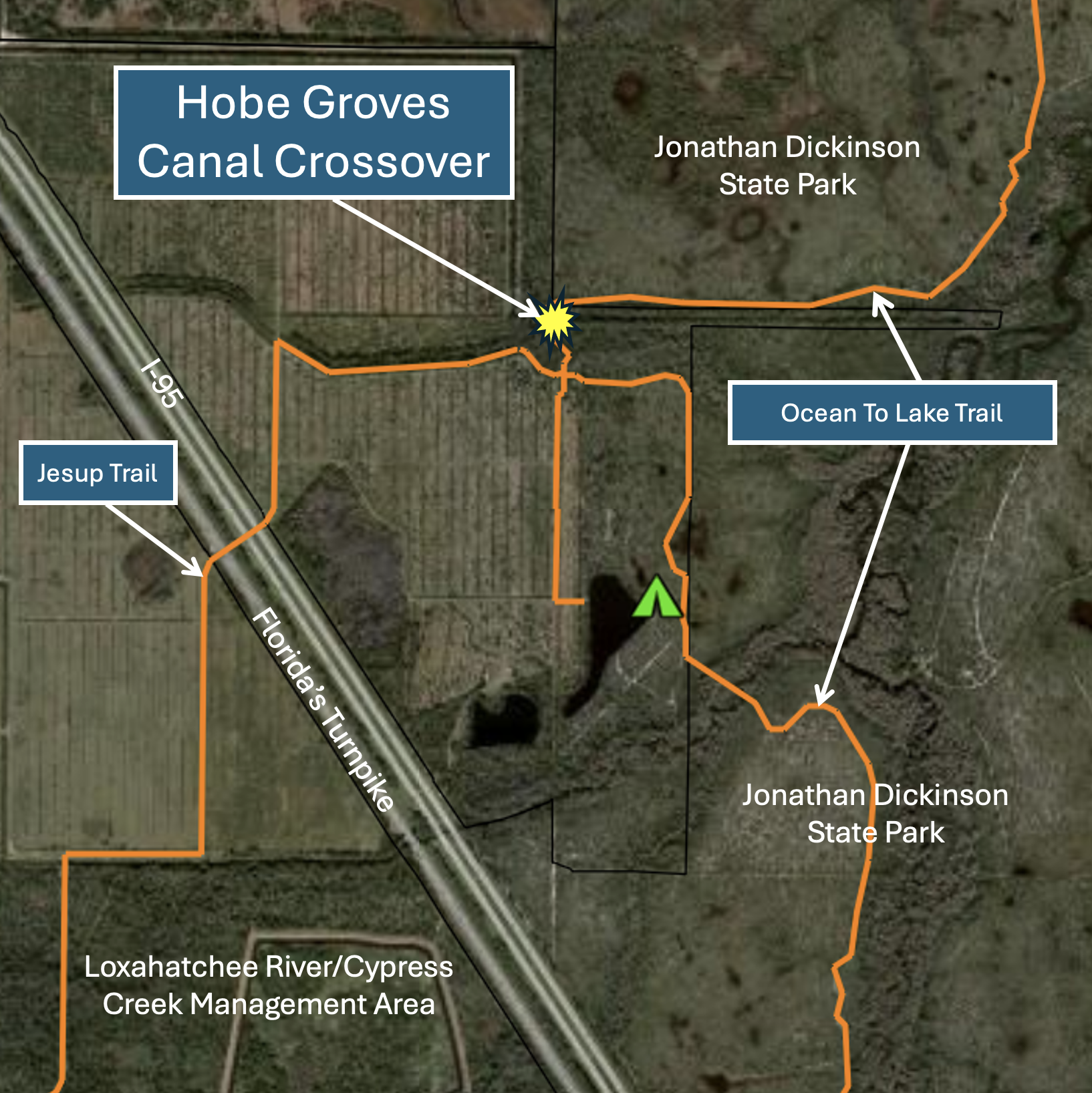 The Ocean to Lake Trail within the Loxahatchee River/Cypress Creek Management Area will be temporarily closed at the Hobe Grove Ditch Canal crossing on January 26-27, 2026 due to construction activities. To view a map of the area, click here.