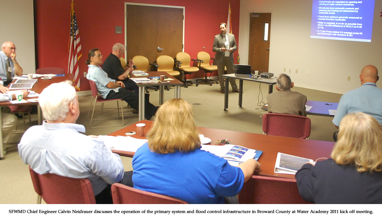Cal Neidrauer describes SFWMD's flood control system at Broward meeting